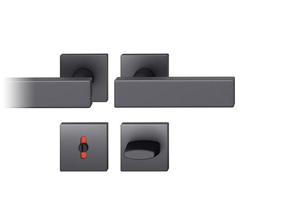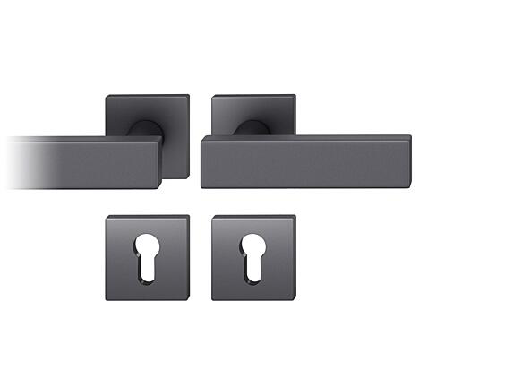 Komplet drzwiowy klamka-klamka, rozetki kwadratowe pod klamkę, rozetki kwadratowe pod klucz, trzpień 8 mm, grubość drzwi 39-58 mm.