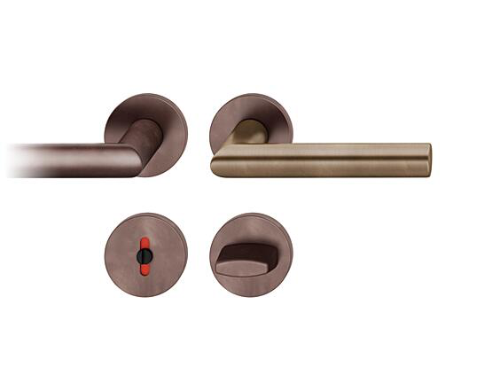 Komplet drzwiowy klamka-klamka, rozetki okrągłe pod klamkę, rozetki okrągłe pod klucz, trzpień 8 mm, grubość drzwi 39-58 mm.