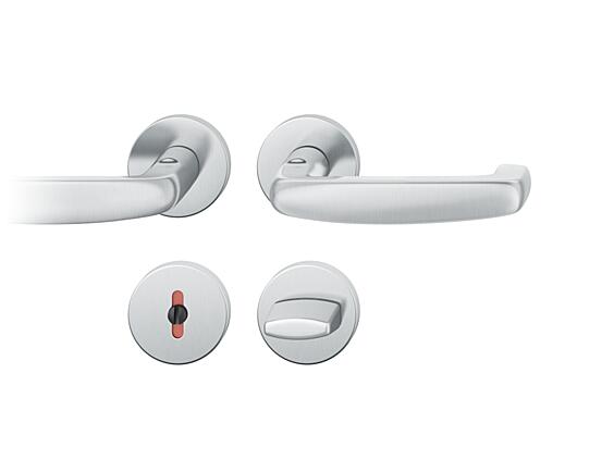 Komplet drzwiowy klamka-klamka, rozetki okrągłe pod klamkę, rozetki okrągłe pod klucz, trzpień 8 mm, grubość drzwi 39-58 mm.