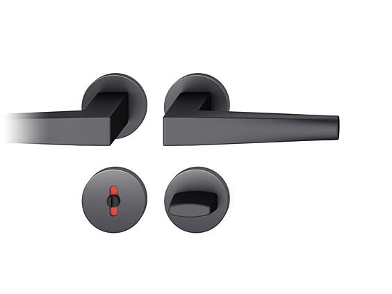 Komplet drzwiowy klamka-klamka, rozetki okrągłe pod klamkę, rozetki okrągłe pod klucz, trzpień 8 mm, grubość drzwi 39-58 mm.
