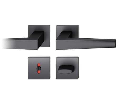 Komplet drzwiowy klamka-klamka, rozetki kwadratowee pod klamkę, rozetki kwadratowe pod klucz, trzpień 8 mm, grubość drzwi 39-58 mm.