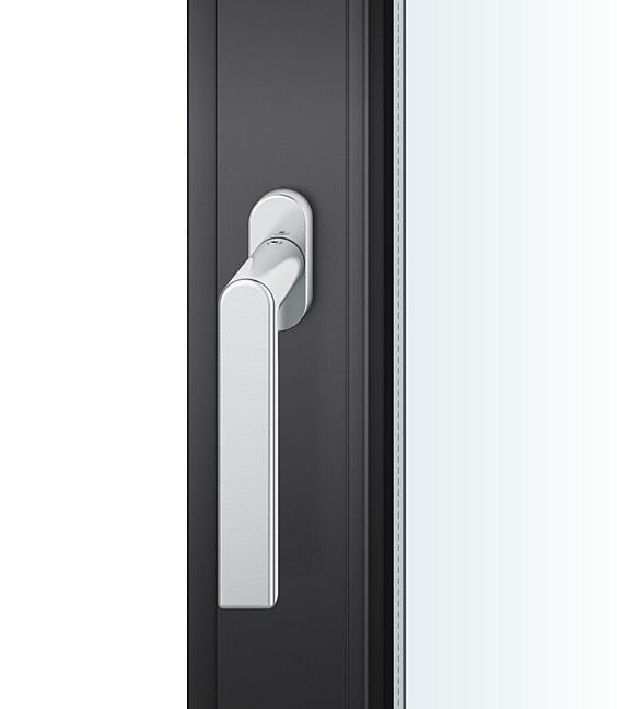 Ich klamka FSB 1244 łączy najprostsze formy geometryczne. Jej linearny front przechodzi w krzywiznę szyjki i jest ograniczany przez prostokątny przekrój. Przekrój uchwytu klamki wykonany jest połowicznie z koła i kwadratu tworząc kształt dający przyjemne oparcie dla dłoni.